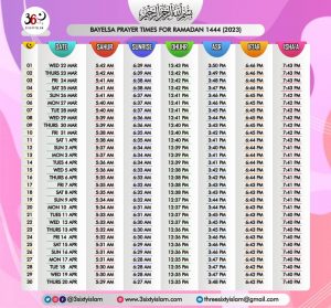 Ramadan Prayer/Meal Times for all States in Nigeria and FCT/Abuja