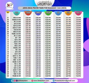 RAMADAN PRAYERS AND MEAL TIMES FOR ALL STATES IN NIGERIA