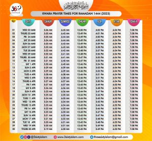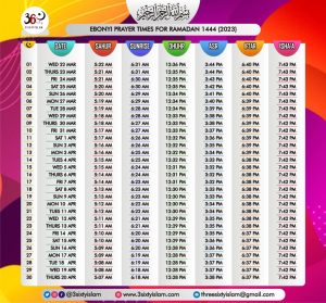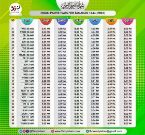 • RAMADAN PRAYERS AND MEAL TIMES FOR ALL STATES IN NIGERIA