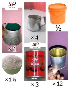 The amount of Zakat al-Fitr is equivalent to one Sa’ (approximately 2.40 kg or 5.29 lbs) of the most common staple food in your community, such as rice, beans, garri, and others. One Sa’ is equivalent to three dericas or 12 milk cups in Nigerian context.