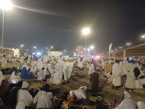 We have now arrived at Muzdalifah, where we will spend the night under the open sky, as is the tradition of Hajj. There are no special sleeping arrangements here; all pilgrims rest on the ground in a shared spirit of humility and unity.