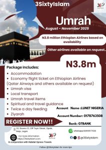3SIXTYISLAM ANNOUNCES ITS AUGUST TO NOVEMBER 2025 UMRAH PACKAGES NOW OPEN FOR BOOKING