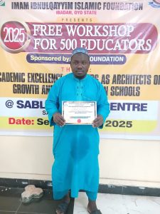 In preparation for 2025/2026 academic session, Association of Model Islamic Schools (AMIS) Oluyole Chapter in collaboration with Imam IbnulQayyim Islamic Foundation but sponsored by L. O. Foundation organised a scintillating Free Workshop on Wednesday, 3rd September, 2025 for five hundred (500) educators from over one hundred private Muslim schools in Ibadan.