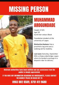 MISSING PERSON: MUHAMMAD AROGUNDADE (VAOSA FAMILY MEMBER)