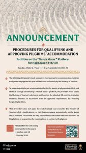SAUDI MINISTRY OF HAJJ ANNOUNCES NEW PROCEDURES FOR PILGRIMS’ ACCOMMODATION APPROVAL